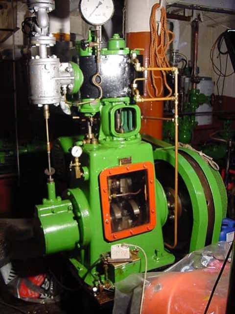 Deze machine drijft de generator aan die op stoom de stroomvoorziening van het schip verzorgt.